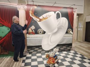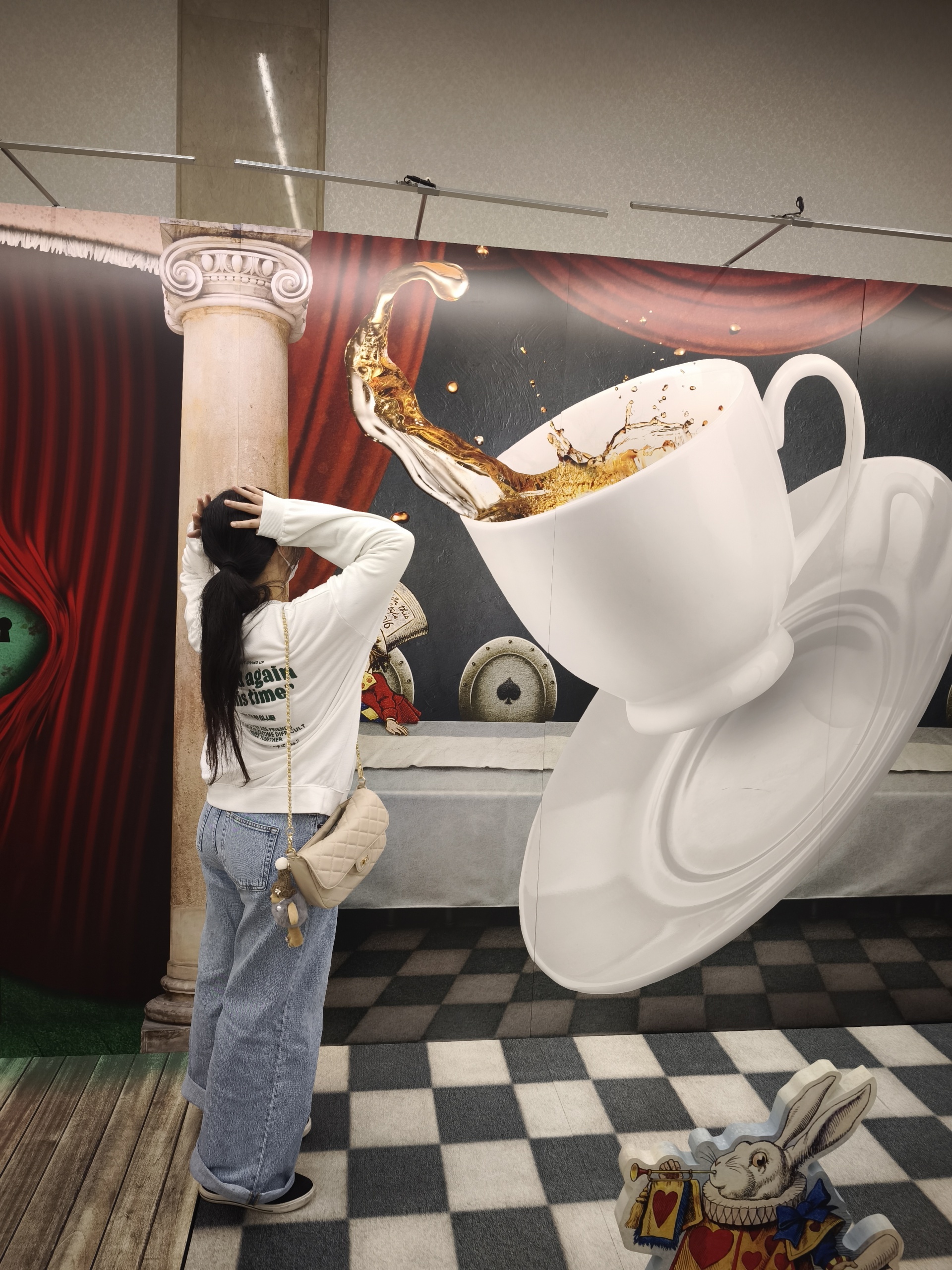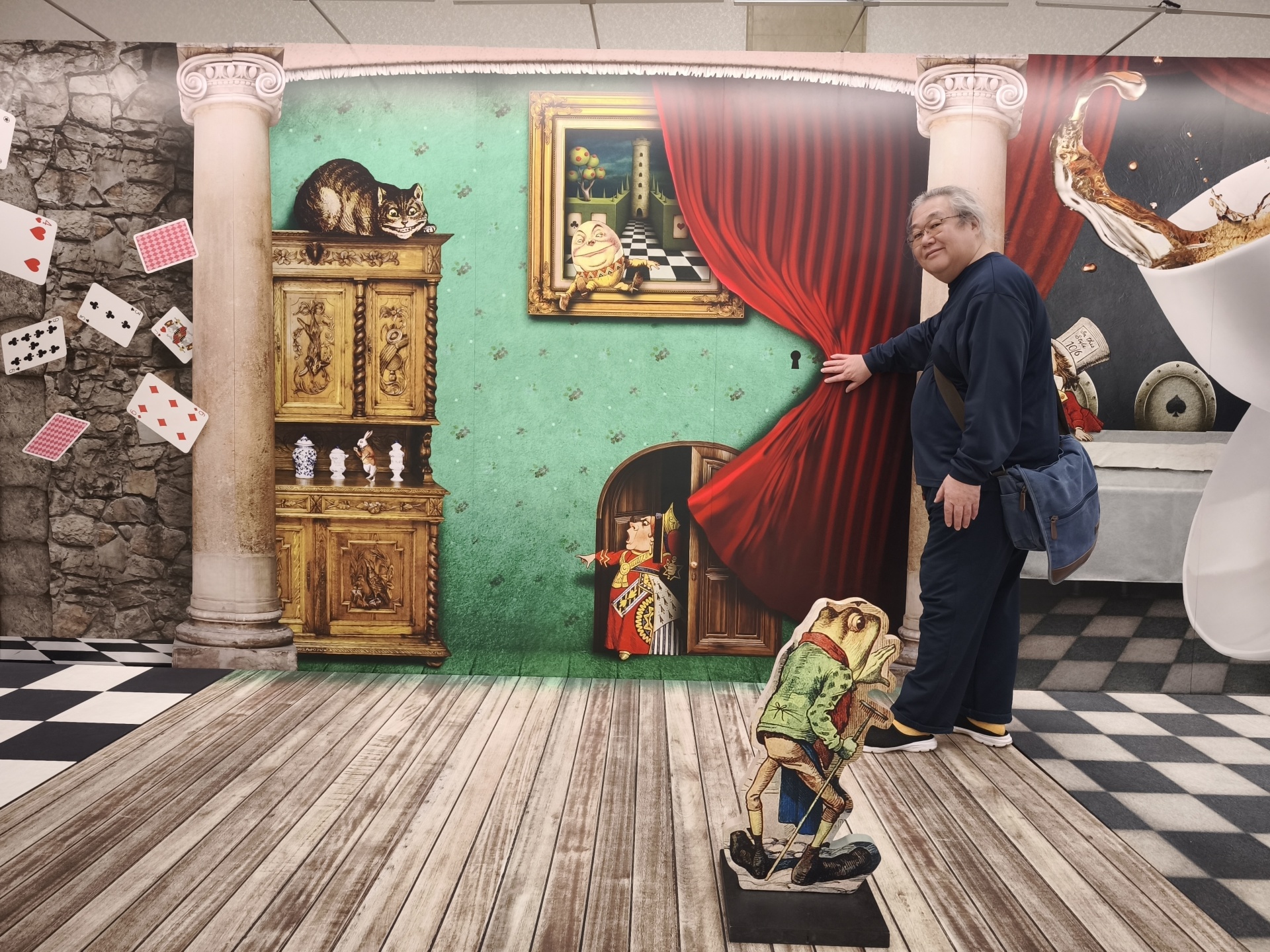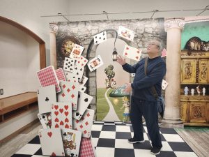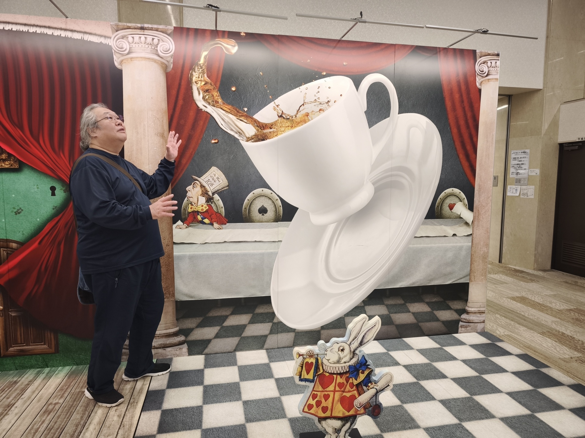 トリックアートの前でむすめの写メ
